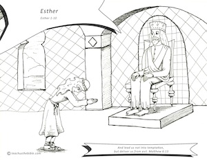 Mordecai persuaded Esther to speak to the king on behalf of the Jewish people. This was a dangerous thing for Esther to do, because anyone who came into the king's presence without being summoned could be put to death, and she had not been summoned. Esther fasted for three days to prepare herself, then went into the king. He welcomed her. Later, she told him of Haman's plot against her people.