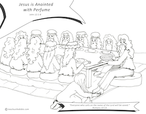 The story of Mary anointing Jesus with perfume is short and can be read directly from the Bible to your students. Here are some highlights and context: